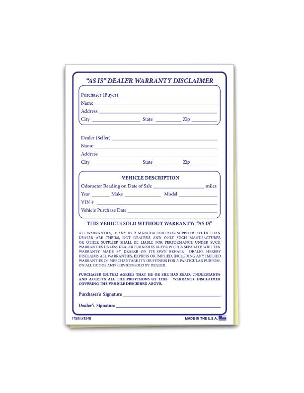 Customer's sign that they received the Buyers Guide and know that the vehicle is sold AS-IS Size: 5-1/2" x 8-1/2"